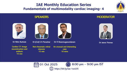 Dear Colleagues Continuing medical education (CME) is an important tool that helps healthcare professionals stay current with the latest scientific advances shaping clinical practice and patient care.. As such the aim of Indian Academy of Echo is furthering academic activity MMI is now an integral part of echo studies. In large number of cases, it plays a key role in diagnosis and prognosis Majority of cardiologists and echo people are not well conversant with cardiac CT and MRI, so possibly bypass or ignore the relevant presentations. As such it is imperative to have basic knowledge of the subject. So it was thought that it is the right time that IAE takes some initiative to help the upcoming young colleagues in this regard Secondly everybody does not have access or time to scan various international, journals including our own JIAE So a journal club presentations will be very interesting for everybody, and will be done on alternate months.